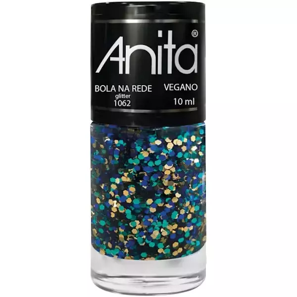 1062 - Bola na rede, o glitter com partículas de tons em verde, amarelo e azul.