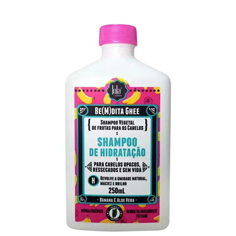 O Shampoo de Hidratação Lola Cosmetics Be(M)dita Ghee Banana & Aloe Vera repõe a umidade natural dos fios ressecados. Assim, consegue garantir maciez, brilho e flexibilidade durante o dia a dia.