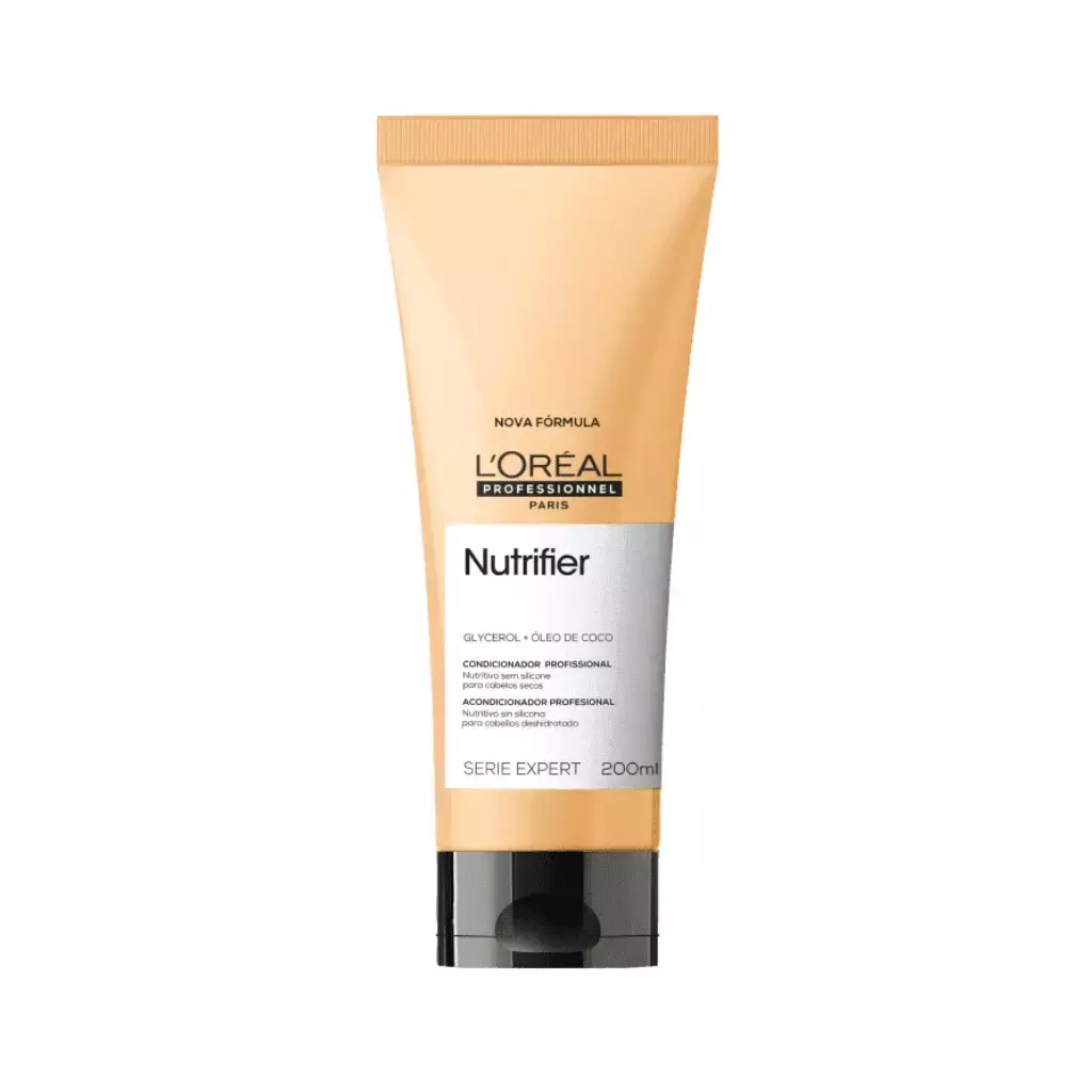 L'Oréal Professionnel Serie Expert Nutrifier proporciona fios mais macios, brilhantes e sem frizz. O Condicionador L'Oréal Professionnel Serie Expert Nutrifier foi desenvolvido especialmente para um tratamento nutritivo para cabelos secos. Sua tecnologia composta por aminoácidos presentes na cadeia de queratina promove resistência ao fio e ácido glutâmico que protege o filme hidrolipídico. Seus principais ingredientes, o Óleo de coco e o Glycerol, conferem nutrição, força, redução do frizz e da perda proteica.