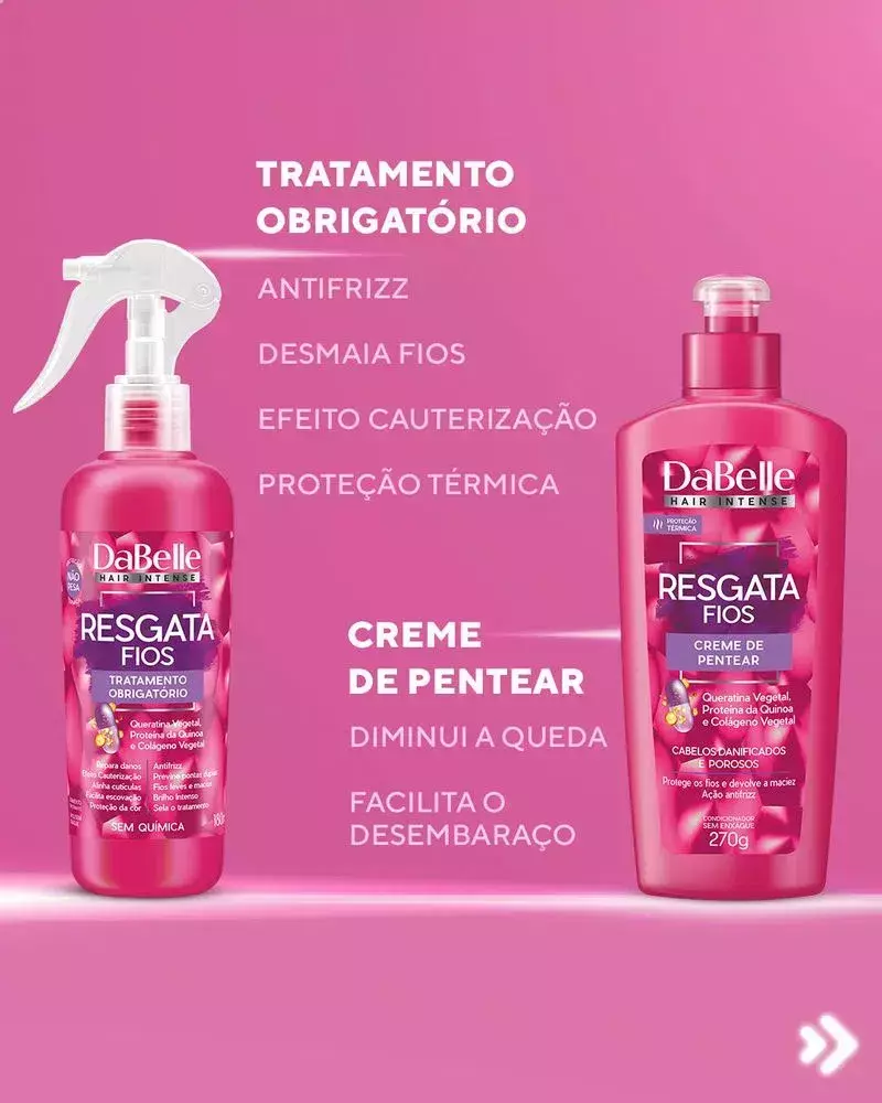 O Tratamento Obrigatório Resgata Fios é ideal para cabelos extremamente danificados. Restaura os fios, sela as cutículas e devolve a maciez. Sua ação termoativada facilita a escovação e protege por danos causados por fontes de calor. É ideal para selar o tratamento de reconstrução.