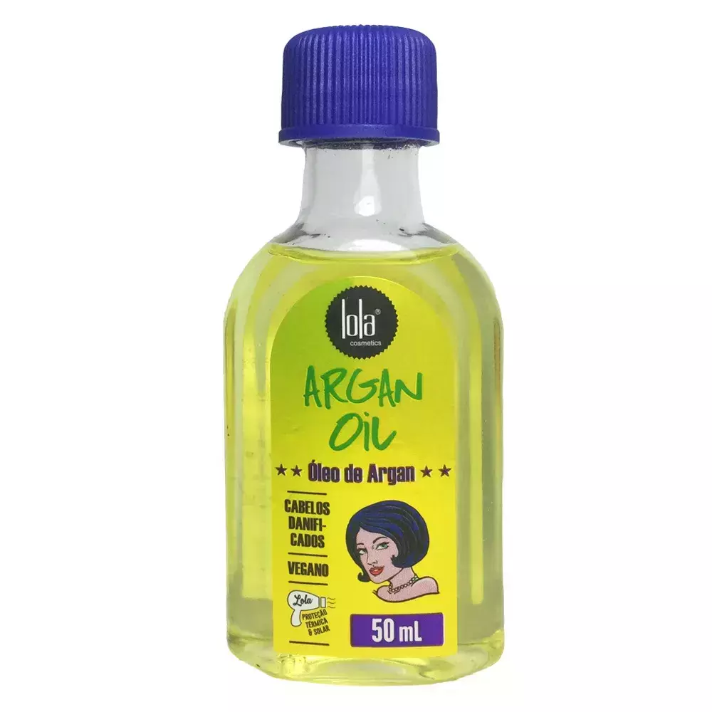 Óleo de tratamento para cabelos danificados. Lola Cosmetics Argan Oil finaliza o cuidado ao ajudar na reconstrução dos fios, além de proteger e disciplinar com leveza.