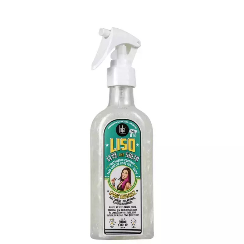 Spray anti-frizz termoativo para cabelos lisos naturais ou alisados quimicamente. Lola Cosmetics Liso, Leve and Solto Spray Anti-Frizz disciplina os fios enquanto aumenta a durabilidade do liso e deixa um brilho bonito.
