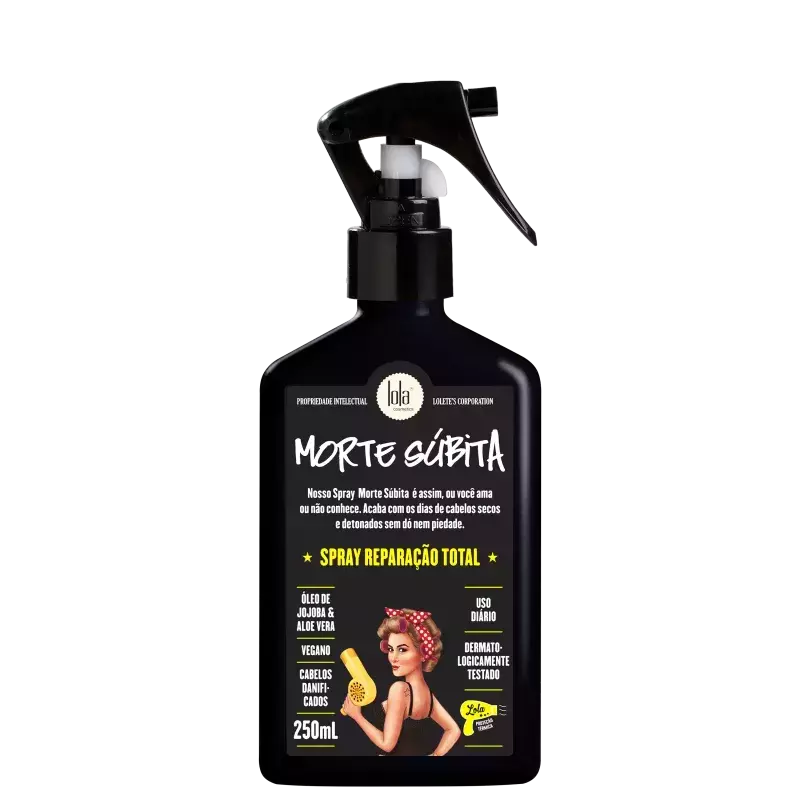 Spray de tratamento para cabelos danificados e quimicamente tratados. Lola Cosmetics Morte Súbita Reparação Total recupera e repara totalmente o fio.