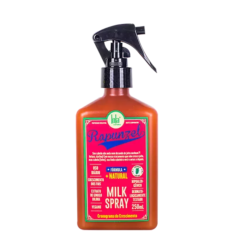 Leave-in para todos os tipos de cabelos. Rapunzel Milk Spray previne o envelhecimento, estimula o crescimento e hidrata os fios.