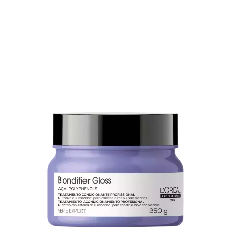 Máscara de tratamento para cabelos loiros e descoloridos. L’Oréal Professionnel Serie Expert Blondifier restaura e revitaliza o brilho com nutrição a base de antioxidantes do açaí.