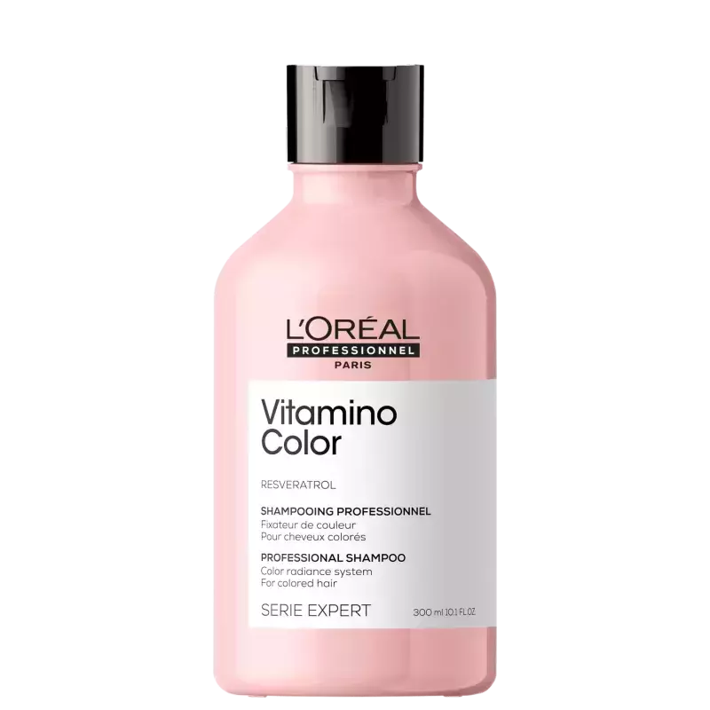 A linha Vitamino Color, de L'Oréal Professionnel, traz como ativo principal o Resveratol, que evita a quebra e trabalha a durabilidade de uma cor vibrante e luminosa nos fios. Além dos cabelos coloridos - considerando que há cor em todos os tipos -, por ter fórmula que não pesa, também pode ser usado por em fios finos, graças à tecnologia de co-emulsão.
