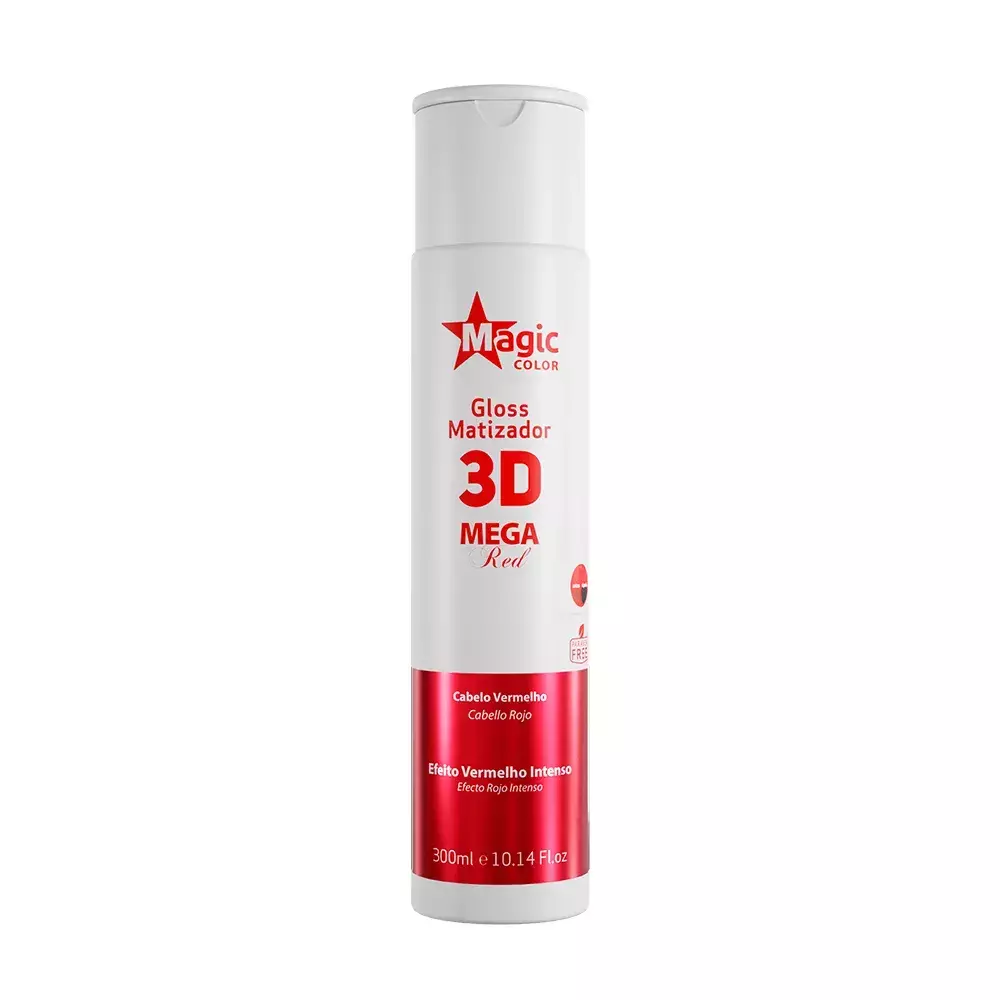 O Gloss Matizador 3D Mega Red é uma Máscara capilar pigmentada com a função de intensificar e revitalizar a cor do cabelo vermelho que, com o passar do tempo, desbota e perde a vitalidade. Possui efeito gloss proporcionado por glitters e fornece aminoácidos essenciais (cisteína, lisina, glicina, arginina e tirosina), oferecendo reestruturação, fortalecimento, resistência e nutrição dos fios. Seu efeito é gradual e progressivo.