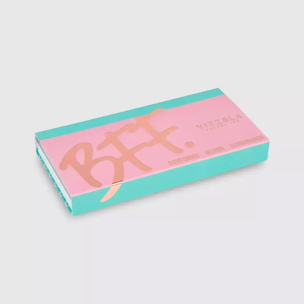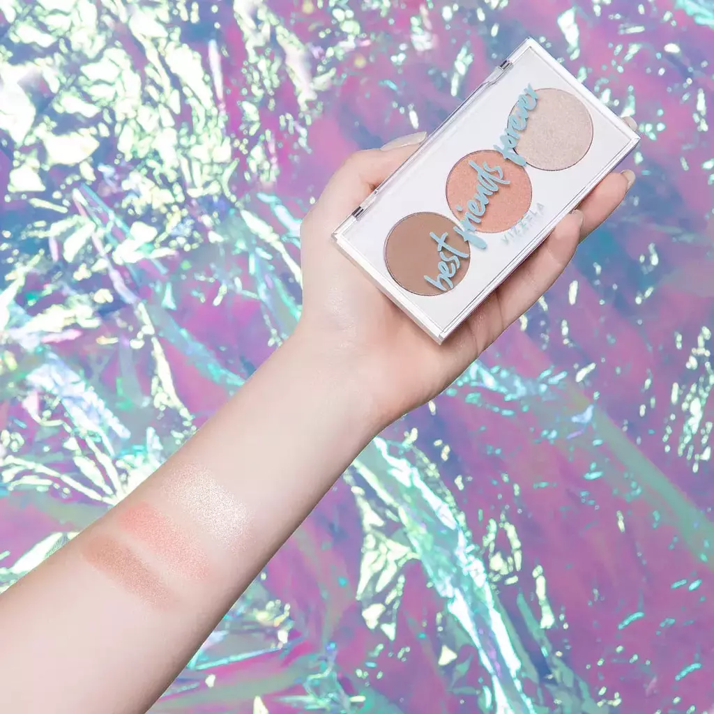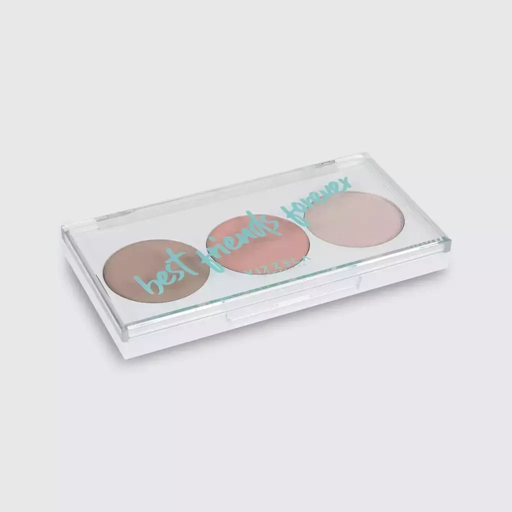 a paleta bff vem com 03 produtos essenciais: contorno, blush e iluminador, é muita praticidade na hora de preparar aquela make incrível. ela vem em 04 versões para diversos tons de pele. sua textura e pigmentação são ideais para valorizar a sua make. além disso, você carrega apenas um produto na sua necessaire e consegue fazer tudo! por isso ela será sua best friend forever.