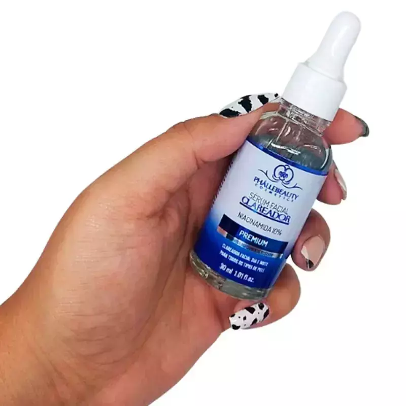 O Sérum Facial Clareador Phállebeauty Premium possui avançada e efetiva tecnologia cosmética, ricamente elaborado e dermatologicamente aprovado. Além de melhorar o aspecto de marcas escuras, revigora o viço e a luminosidade da pele e diminui o tamanho dos poros.