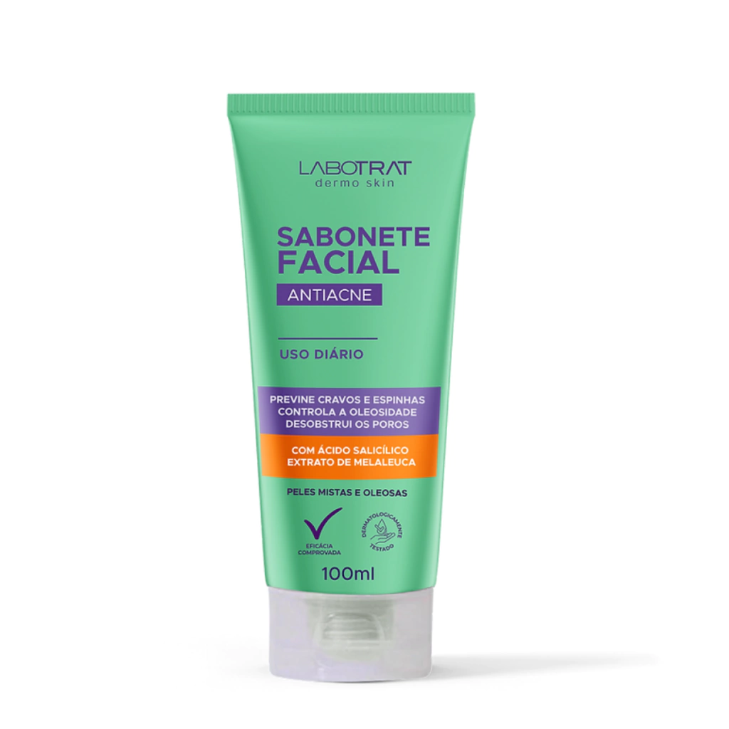Usar de 2 a 3 vezes ao dia. Com o rosto molhado aplicar quantidade suficiente do Sabonete Antiacne Labotrat, massagear com movimentos circulares e suaves até obtenção de espuma cremosa em seguida fazer a remoção total do produto com água. Benefícios: Previne cravos e espinhas Controla a oleosidade Desobstrui os poros Com ácido salicílico Extrato de melaleuca Pele mista e oleosa Eficácia comprovada Testado dermatologicamente