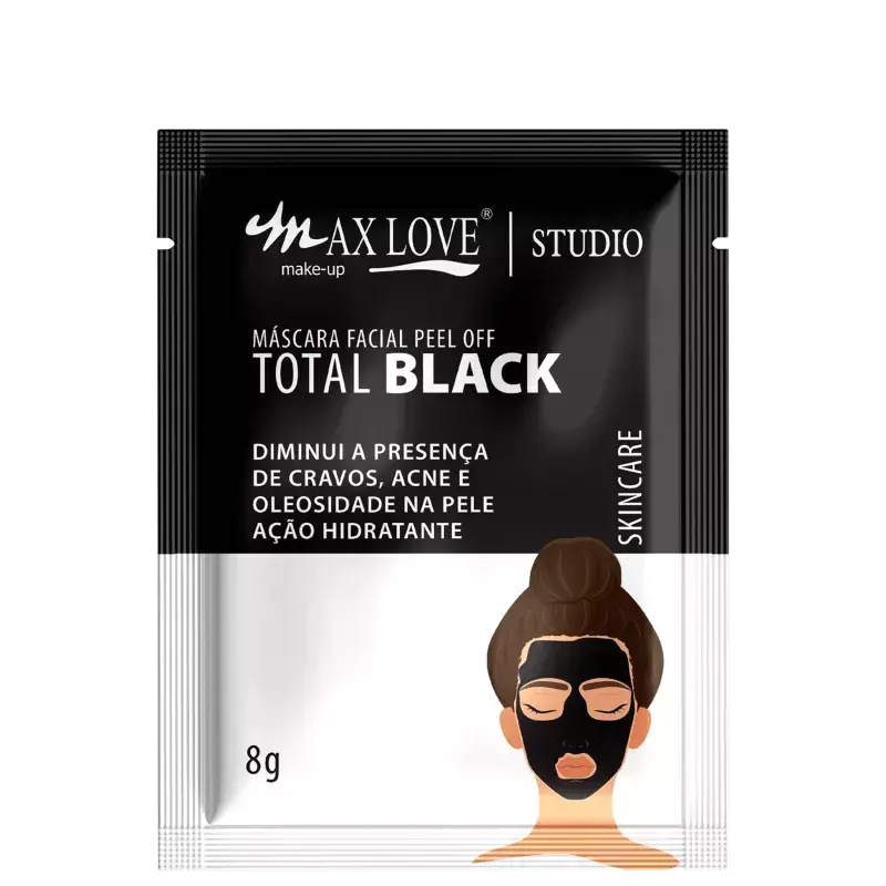 Máscara facial. Max Love Peel Off Total Black hidrata e diminui a presença de cravos, acne e oleosidade na pele.