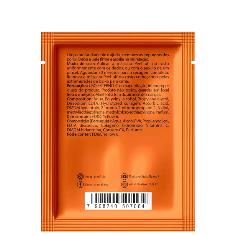 Máscara facial. Max Love Peel Off Vitamina C e Colágeno auxilia na hidratação da pele e na renovação celular.