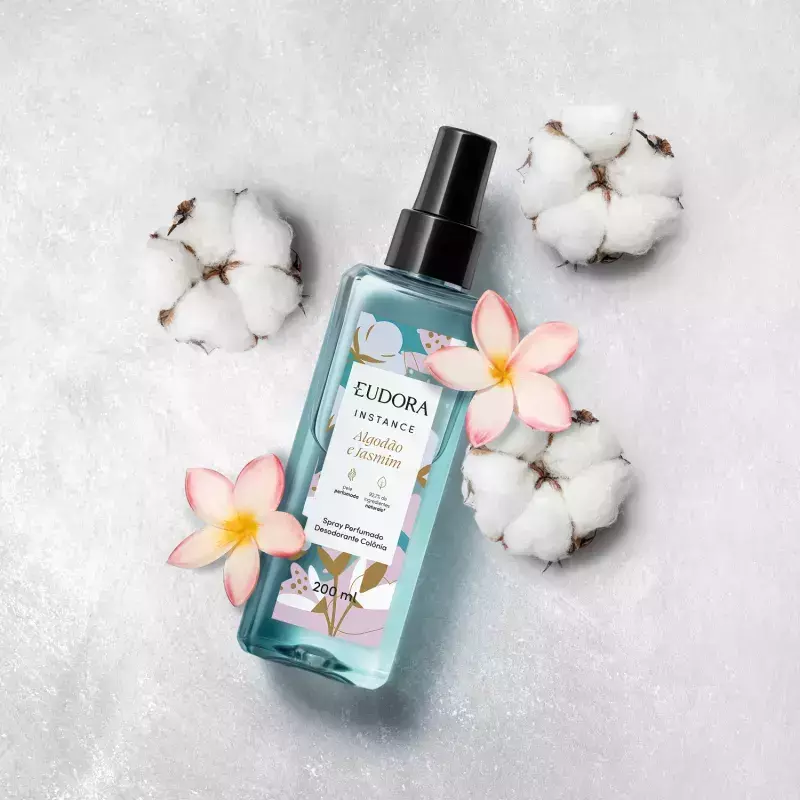 Vegano, este body splash Eudora Instance Algodão e Jasmim é formulado com 92,7% de ingredientes naturais selecionados para oferecer o melhor à sua pele.