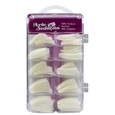 As Tips de Unhas Postiças Arte Sedução Sorriso são numeradas e possuem degrau para facilitar a aplicação e um acabamento incrível. Acompanha uma linda caixinha acrílica com divisões, perfeita para armazenamento e também para manter a organização. São ideias para uso profissional ou doméstico.